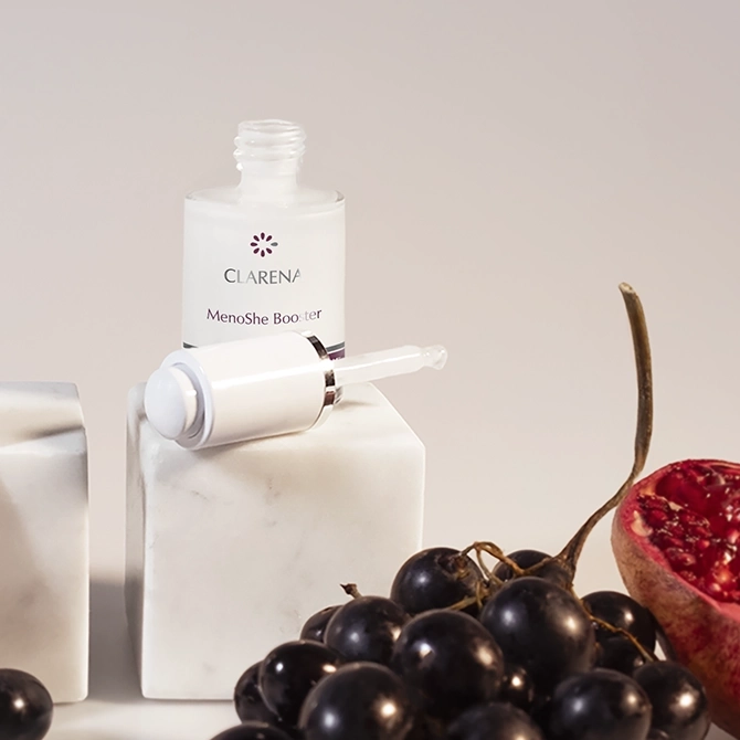 MenoShe: Popławska Group -laboratorion kehittämä kompleksi vaihdevuosien ihon hoitoon. Se yhdistää kolme kasviuutetta: granaattiomenan, ginsengin ja resveratrolin, jotka ovat rikkaita bioaktiivisia fytoestrogeeneja, polyfenoleja, hivenaineita, happoja, vitamiineja ja polysakkarideja. Tämä yhdistelmä vaikuttaa myönteisesti ihoon, palauttaa ihon oikean paksuuden, kiinteyden ja elastisuuden sekä stimuloi kollageenin ja elastiinin tuotantoa. Kompleksilla on voimakas antioksidanttivaikutus.